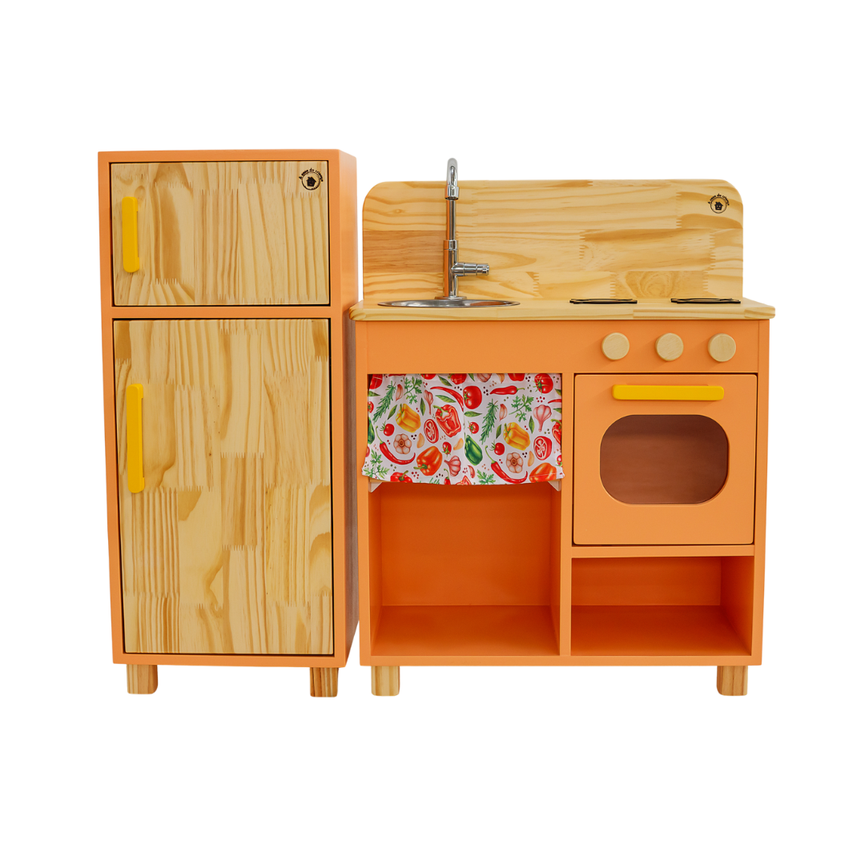 Mini cozinha compacta com geladeira - LARANJA - A Casa da Criança